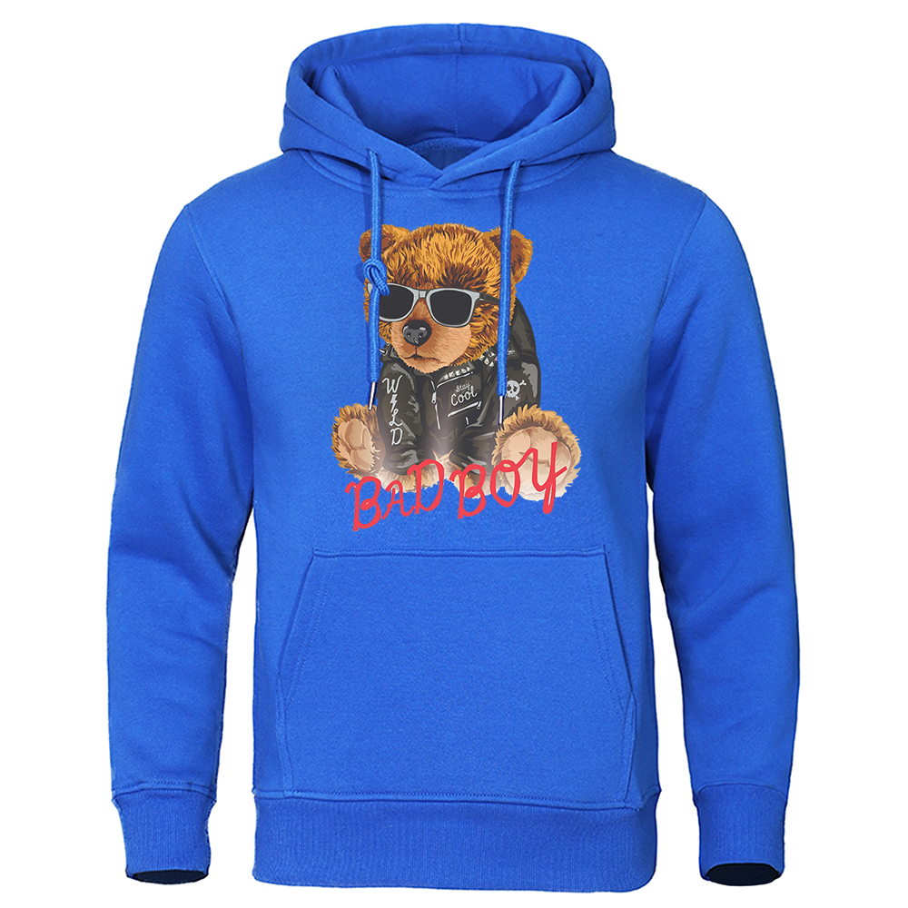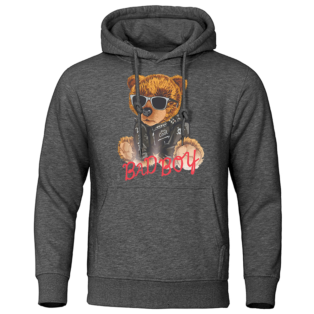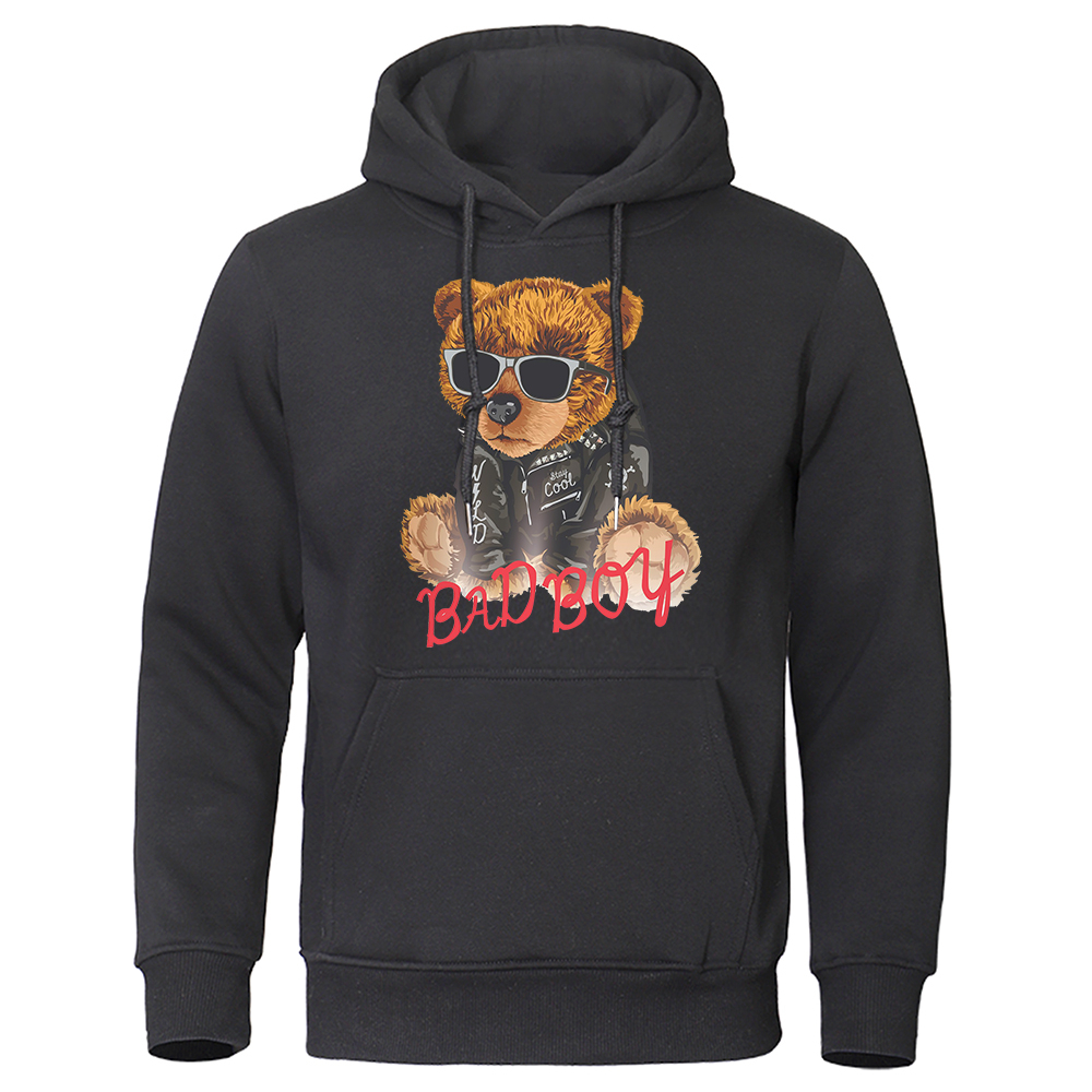 Bad Boy Teddy Bear With Sunglasses Clothing Male Fashion Loose Hoodies Harajuku Fleece Sweatshirt Oversized Pocket Menswear